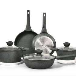 Set di pentole antiaderente in granito di lusso con coperchio in vetro pressofuso in alluminio a induzione set di pentole in metallo